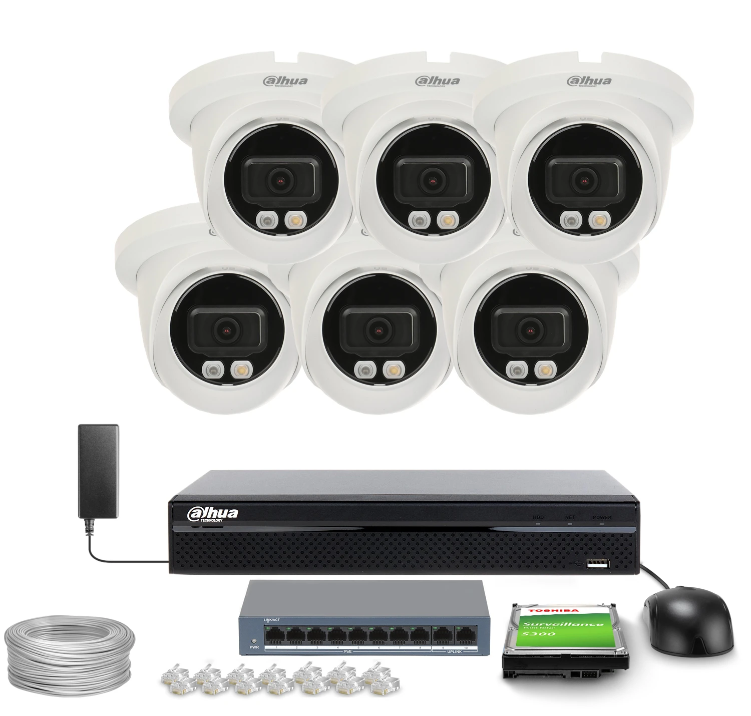Zestaw do monitoringu 6x IPC-HDW2449TM-S-IL-0280B, 4Mpx, IR 30 m Dahua