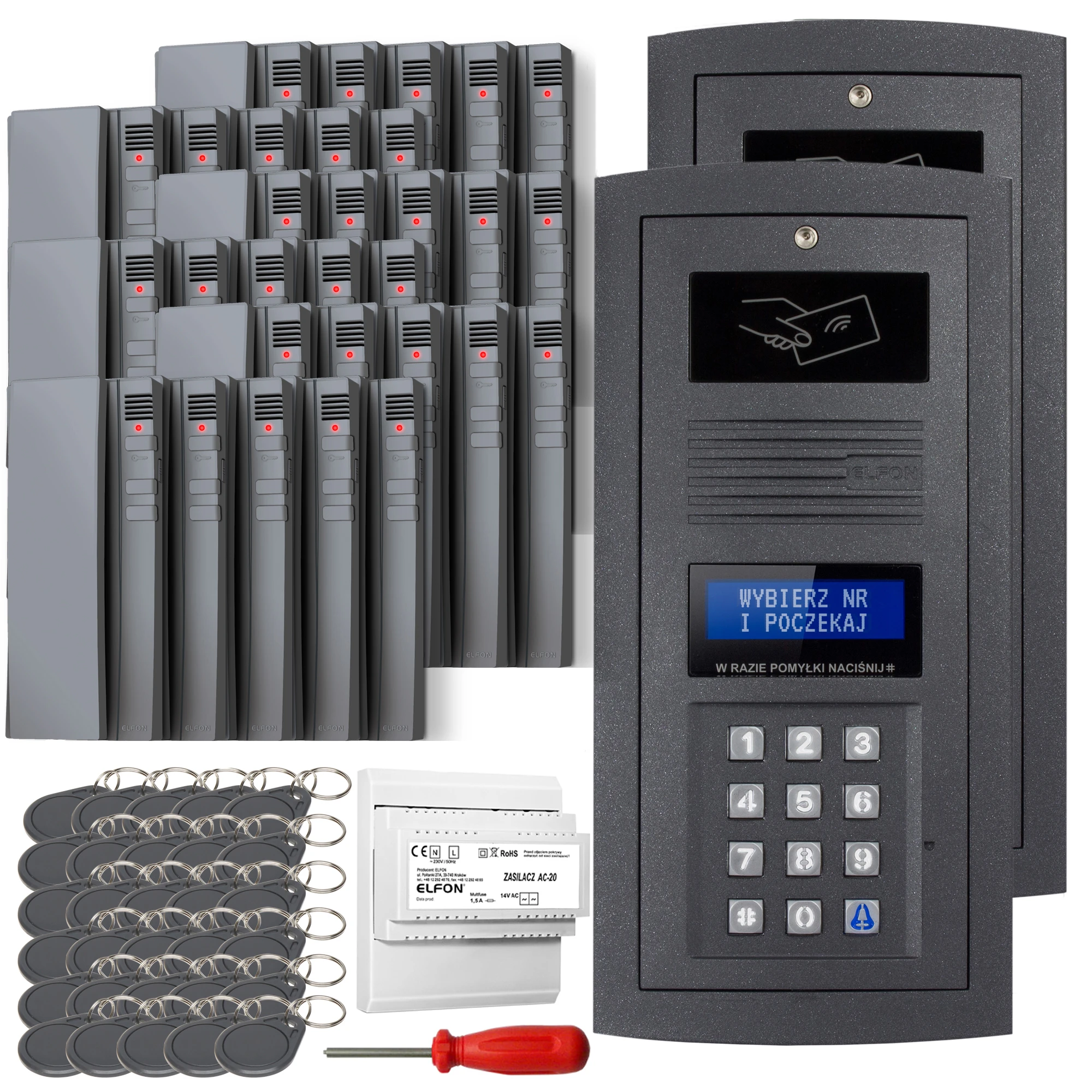 Zestaw domofonowy cyfrowy ELFON 2x OP-SL255R-G Grafit Natynkowy, 30x OP-U7/3-S Szary