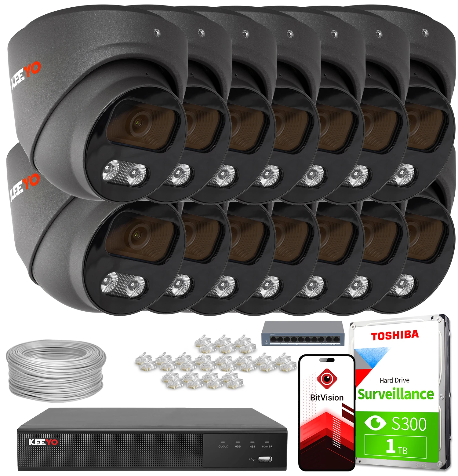 Zestaw do monitoringu IP KEEYO 14x LV-V-IP8M40DF-G-II 8Mpx IR 40m