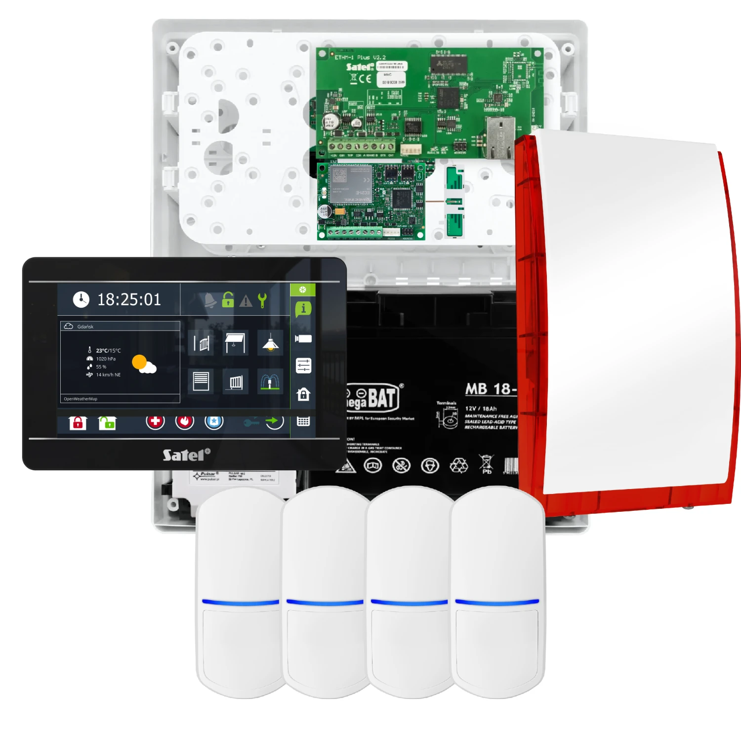 Zestaw alarmowy SATEL INTEGRA 32, 4x czujka , sygnalizator, czarny manipulator INT-TSI-B, komunikacja LTE
