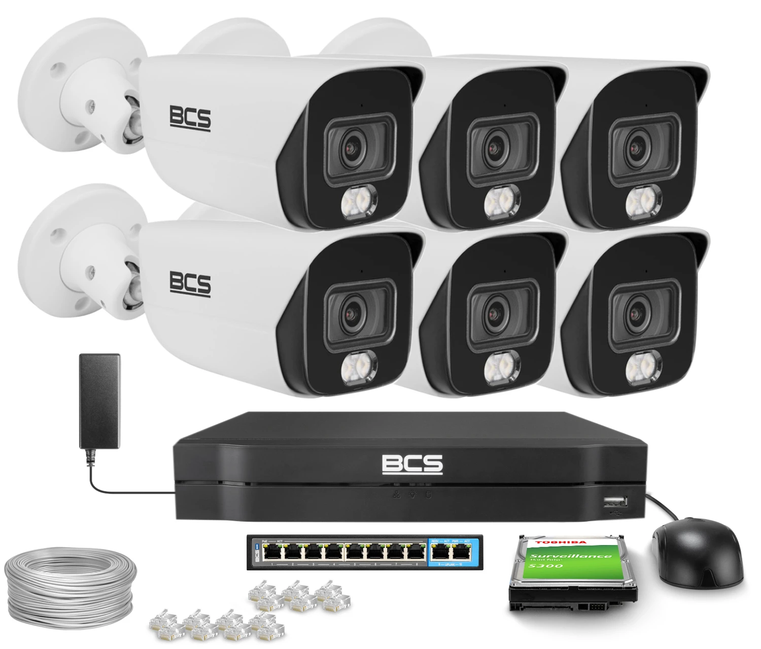 Zestaw do monitoringu IP 6x BCS-L-TIP26FCR5L5-Ai1 6Mpx, NightColor, Whitelight 50m, funkcje inteligentne