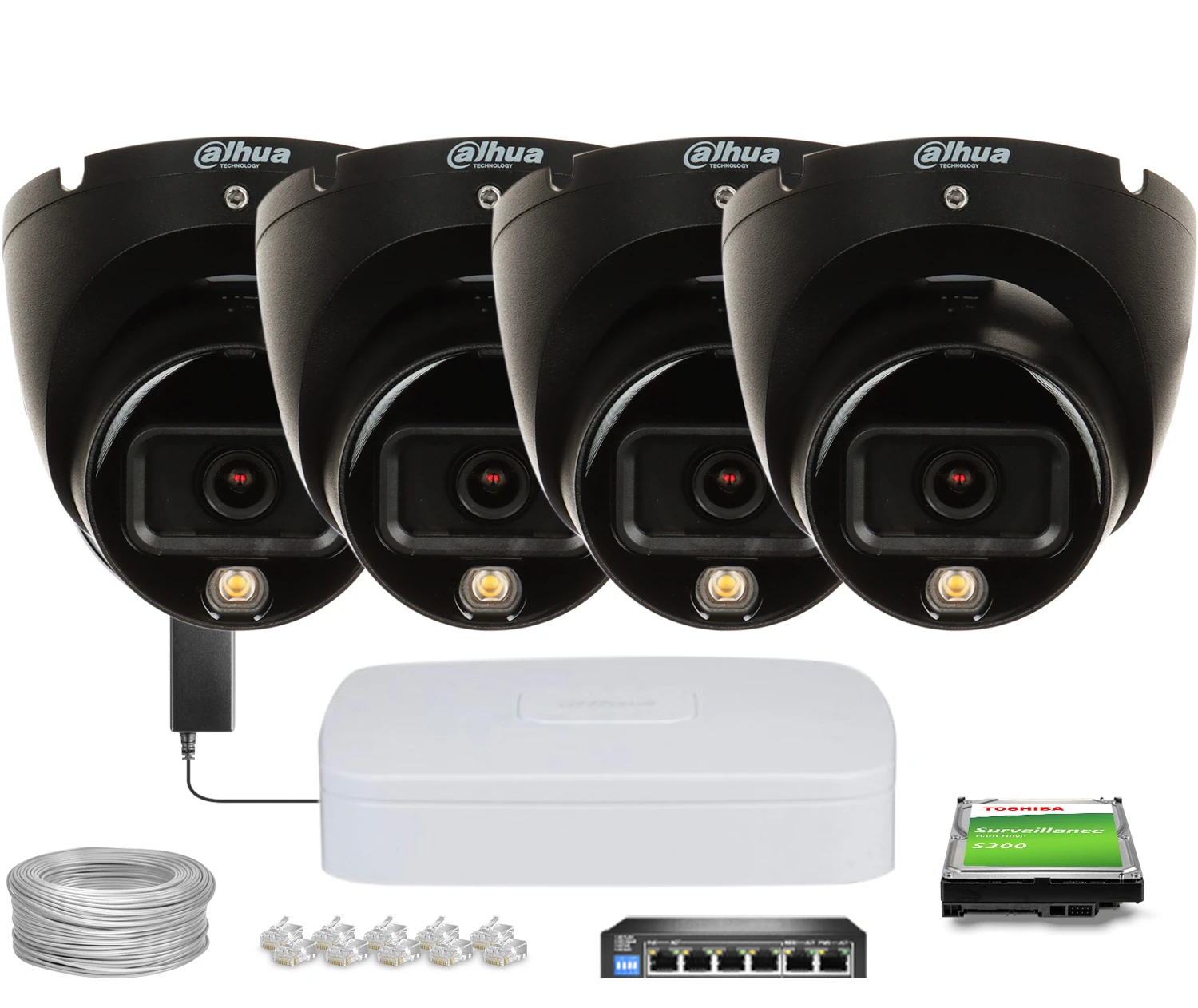 Zestaw do monitoringu IP Dahua 4x IPC-HDW1839T-A-IL-0280B-S6 Black Smart Dual Light 8 Mpx 2.8mm Dahua