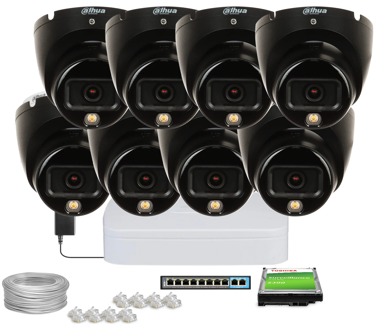 Zestaw do monitoringu IP Dahua 8x IPC-HDW1839T-A-IL-0280B-S6 Black Smart Dual Light 8 Mpx 2.8mm Dahua