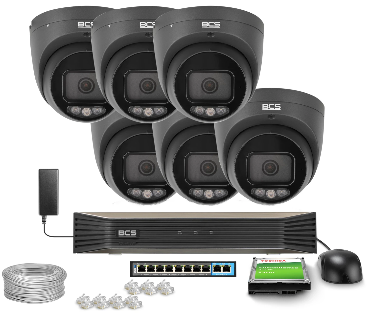Zestaw do monitoringu IP 6x BCS-P-EIP28FSR3L3-AI2-G(2) 8Mpx, ADC, WhiteLight, WDR130dB, NightColor