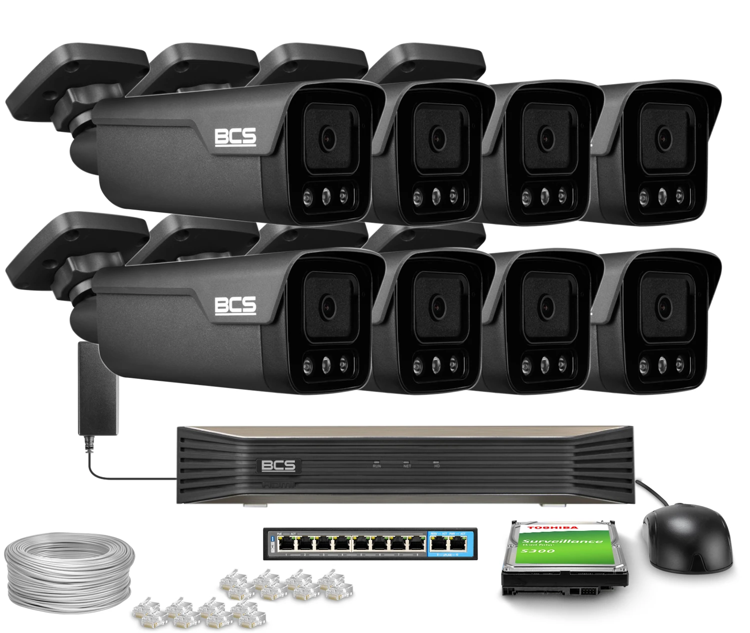 Zestaw do monitoringu IP 8x BCS-P-TIP28FSR4L4-AI2-G(2) 8Mpx, ADC, WhiteLight, WDR130dB, NightColor